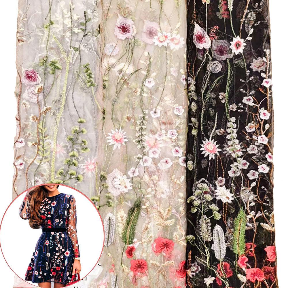 Flower Aquatic Grass Embroidered Lace Tulle Mesh Fabric DIY Craft Material for Costume Wedding Dress Skirt Clothes By The Yard