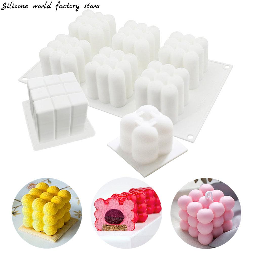 Silicone world Silicone 3D Cube Baking Mousse Cake Mold Dessert Molds DIY Aromatherapy Candle Plaster Mould Handmade Soap Mold