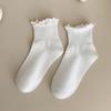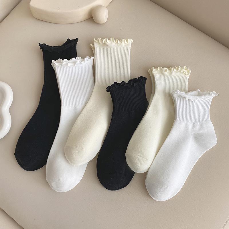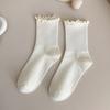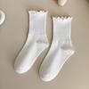 Spring and summer JK pure cotton solid color fungus lace socks women's medium tube Japanese cute girl socks Lolita versatile socks