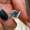 2026 Heart-shaped Sea Blue Full Ring Arm Zircon Open Ring Female, Niche Design Light Luxury Ring