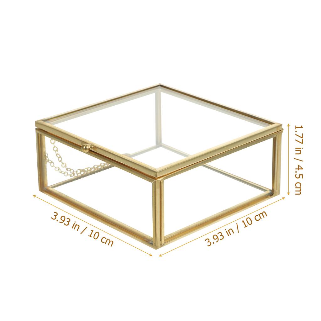 Glass Jewelry Holder Alloy Case Clear Display Jewelry Organizer Retro Style Trinket Box for Home Use Trinket Box with Lid
