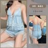 Beautiful yarn sexy women's ice silk suspender shorts set front lace-up pure desire wind belt chest pad lace suit