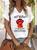 Women's V-Neck "I Didn't Lose My Mind" Graphic Tee, Funny Cartoon Print T-Shirt, Casual Short Sleeve Humor Top