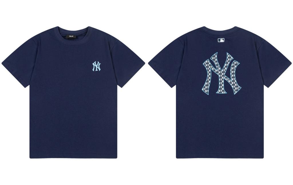 MLB & NY Large Logo Printed Short Sleeve T-shirt Navy 946