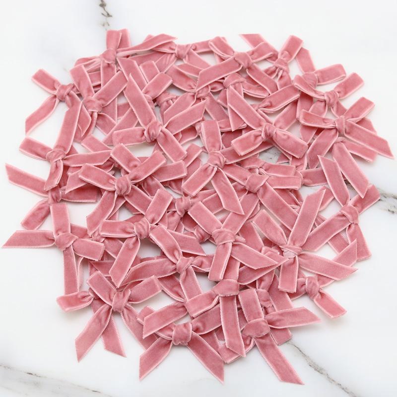 (50 Pcs/pack)5*5cm Velvet Bow Flesh Pink Colourful Ribbon Bows Small Size Polyester Satin Ribbon Bow Flower DIY Craft Decoration