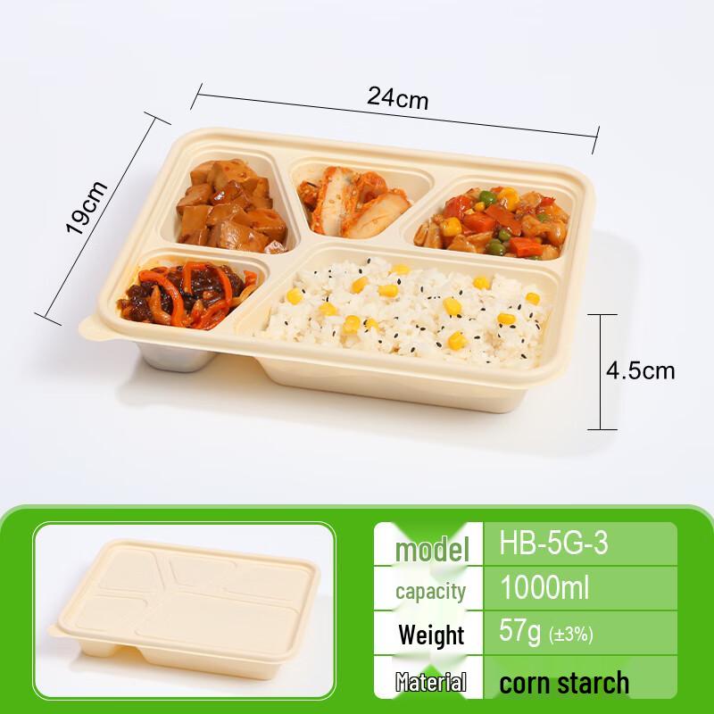Eco-Friendly Corn Starch 5-Compartment Meal Prep Containers