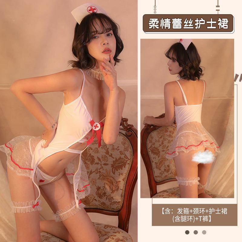Sexy Nurse Uniform Lace Perspective Maid Cosplay Passion Suit