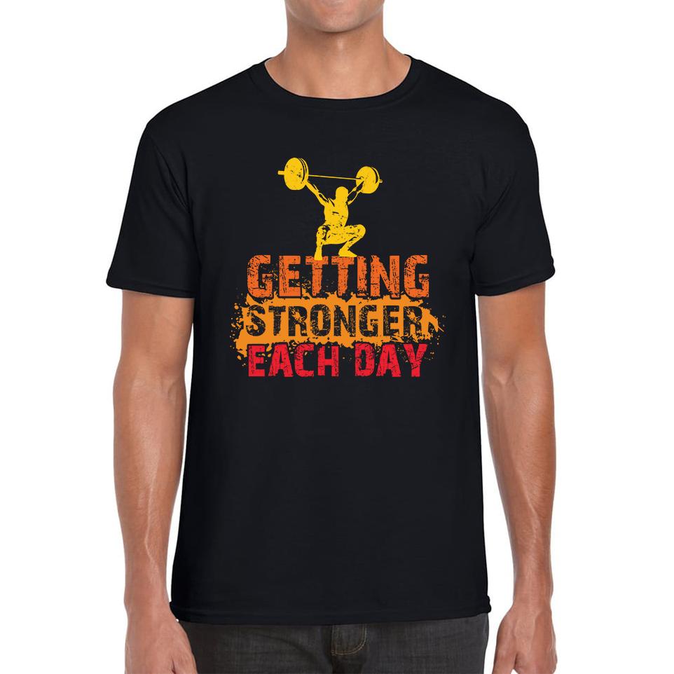 Getting Stronger Each Day Weightlifting Gym Unisex Mens T Shirt Womens Tops Tees