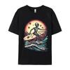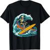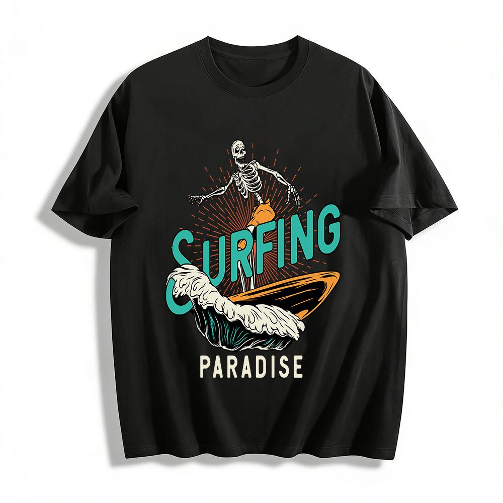 Skeleton Surfing Print Casual T-Shirt Summer Beach Trendy Top Pure cotton T-shirt