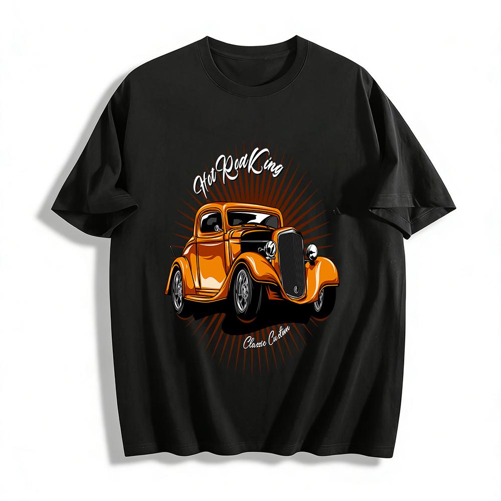 Vintage American Classic Car Print Tee Casual Top For Car Enthusiasts Pure cotton T-shirt
