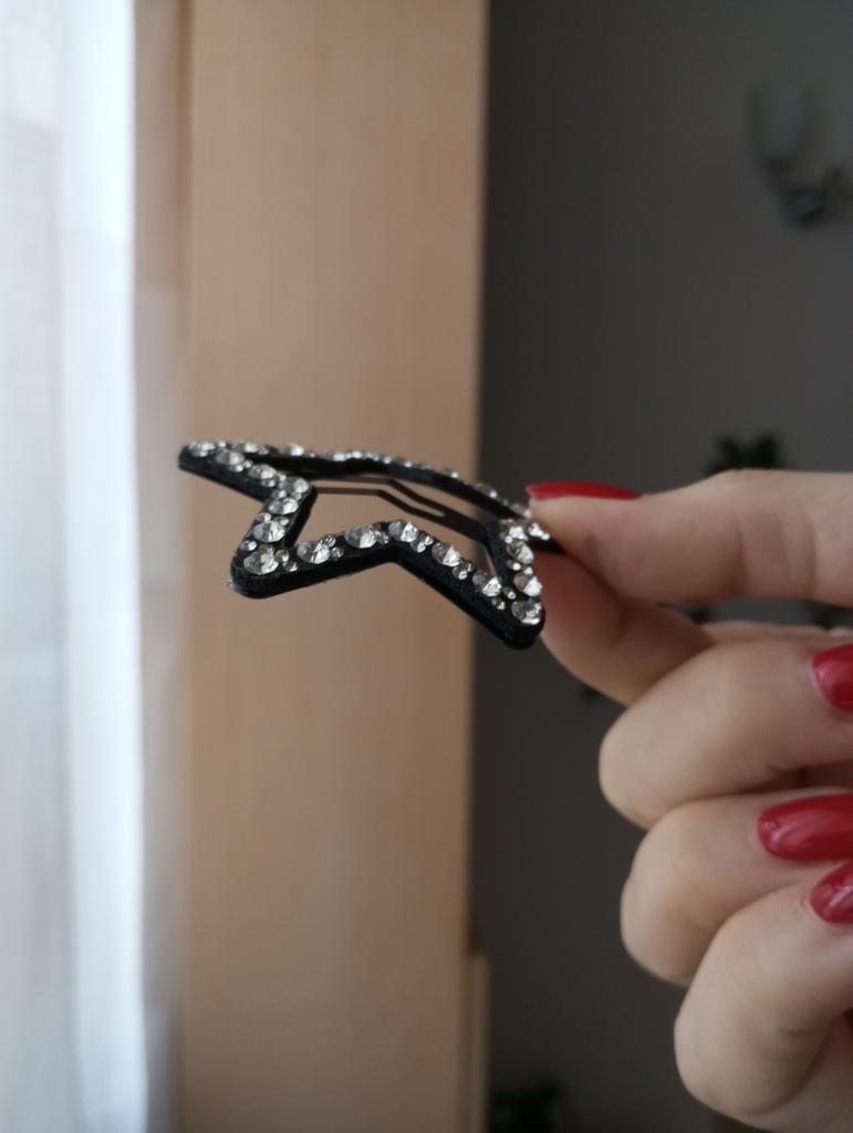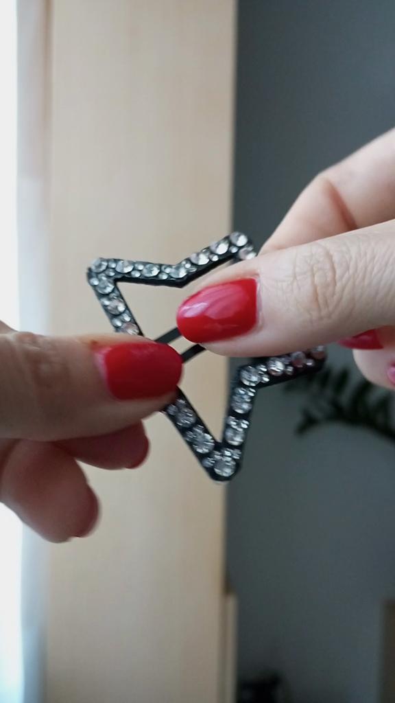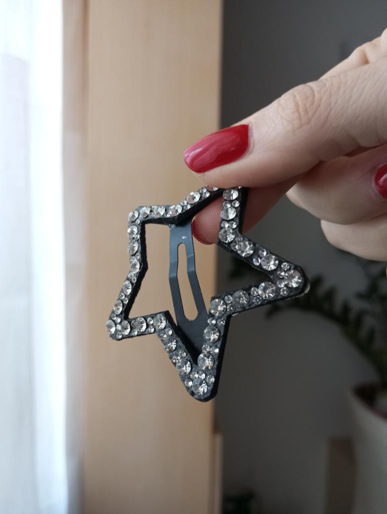 Clips de Păr în Formă de Stea cu Strass – O notă de strălucire în stilul tău Tocmai am adăugat acest accesoriu de păr la colecția mea și am rămas plăcut surprinsă. Este un accesoriu simplu, dar capabil să dea personalitate oricărei coafuri.. Design și Stiluri Forma de stea este un clasic atemporal care adaugă o notă jucăușă și puțin „glam” look-ului. Ceea ce impresionează imediat este decorațiunea bogată cu strasuri care acoperă întreaga structură a stelei: acestea captează lumina în mod splendid, creând reflexii scânteietoare care nu trec neobservate. Contrastul dintre baza închisă la culoare și luminozitatea strasurilor îl face perfect atât pentru un look de zi, pentru a da un pic de strălucire unei coafuri simple, cât și pentru o seară în care vrei să adaugi un detaliu luminos fără a exagera.. Practicitate și Fixare Clama de păr folosește mecanismul clasic cu clic, pe care personal îl găsesc printre cele mai confortabile: se deschide ușor și se închide sigur. Structura este robustă, ceea ce garantează o bună fixare chiar dacă ai păr mediu des sau dacă vrei doar să prinzi o șuviță lateral pentru a-ți ține fața curată. Este ușoară, deci nu trage și nu deranjează, permițându-ți să o porți toată ziua fără probleme.. Judecată Finală Este un mic accesoriu cu un impact mare. Excelent pentru cei cărora le plac detaliile care fac diferența și pentru cei care caută o soluție rapidă pentru a transforma o coafură obișnuită în ceva mai îngrijit și mai luminos. Este, de asemenea, o idee excelentă de cadou pentru o prietenă sau pentru cineva căruia îi plac accesoriile strălucitoare pentru păr.. Puncte forte: Design o stea foarte grațioasă și modernă. Efect sclipitor garantat de strasuri. Mecanism cu clichet fiabil și ușor de utilizat. Ușor și versatil pentru diferite tipuri de coafură.
