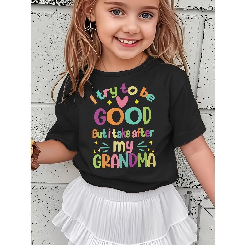 European Size Girls Round-neck Short-sleeved T-shirt with Unique English Patterns GOOD But I Take After My GRANDMA