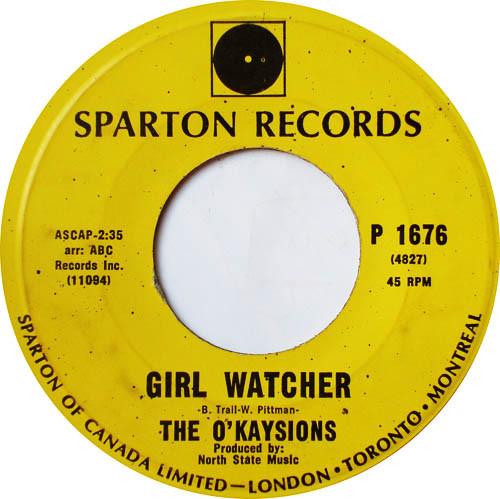 7inch Record OKAYSIONS Girl Watcher P1676 Sparton 1968 Canada SoulFunk Used