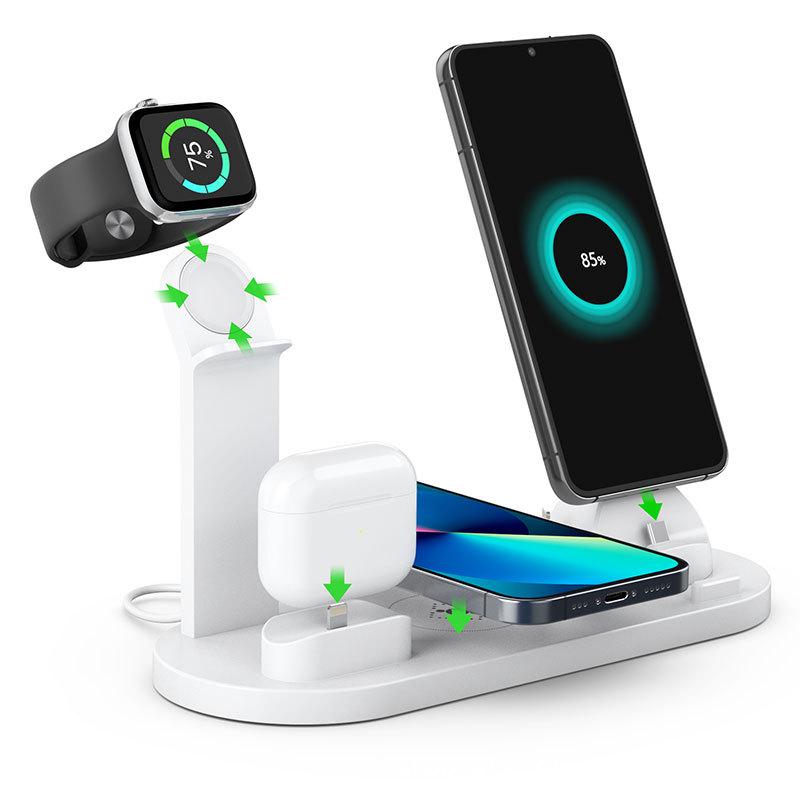 Hot-Selling Six-in-One Mobile Watch & Earphones Wireless Charger with Custom Logo