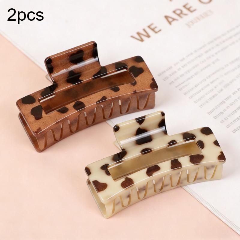 2pcs Leopard Print Hair Claw Set Stylish Back-of-the-Head Clips for Women's Daily Outfits and Party Wear Suitable for Bathing
