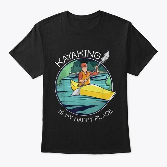 Kayaking Is My Happy Place Graphic Desig T shirt Made in the USA Size S to 5XL