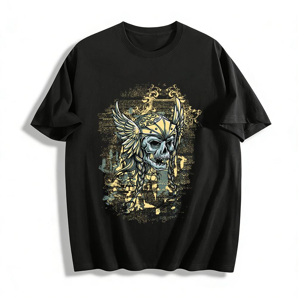 Vintage Viking Winged Helmet Skull Print Cool Casual Men's T-shirt Pure cotton T-shirt