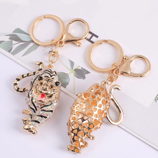 Keychain Pendant Sparkling Rhinestones Tiger Shape Charm Key Chain Strong Lobster Clasp Multi-Functional Key Holder