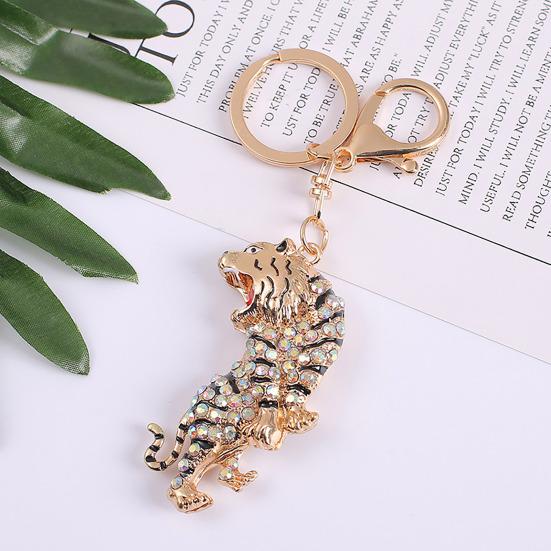 The dominant tiger shape is intricately inlaid with sparkling rhinestones, adding a unique and charismatic touch. Equipped with a strong lobster clasp, it ensures secure attachment and prevents loss with smooth opening and closing.