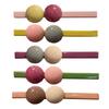 Designed with a playful macaron contrasting color scheme—round candy balls paired with fresh long stripes—it brings a lively, youthful vibe perfect for creating a Korean girly style. Compact and versatile, it suits various hairstyles like buns, half-updos, and low ponytails, ideal for commuting, dating, or school. Its unique “candy string” shape offers high recognition and won’t snag or hit ears, making it the perfect finishing touch for elegant hairstyles.