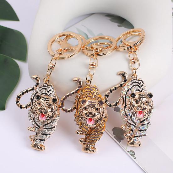 Keychain Pendant Sparkling Rhinestones Tiger Shape Charm Key Chain Strong Lobster Clasp