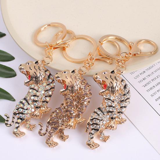The dominant tiger shape is intricately inlaid with sparkling rhinestones, adding a unique and charismatic touch. Equipped with a strong lobster clasp, it ensures secure attachment and prevents loss with smooth opening and closing.