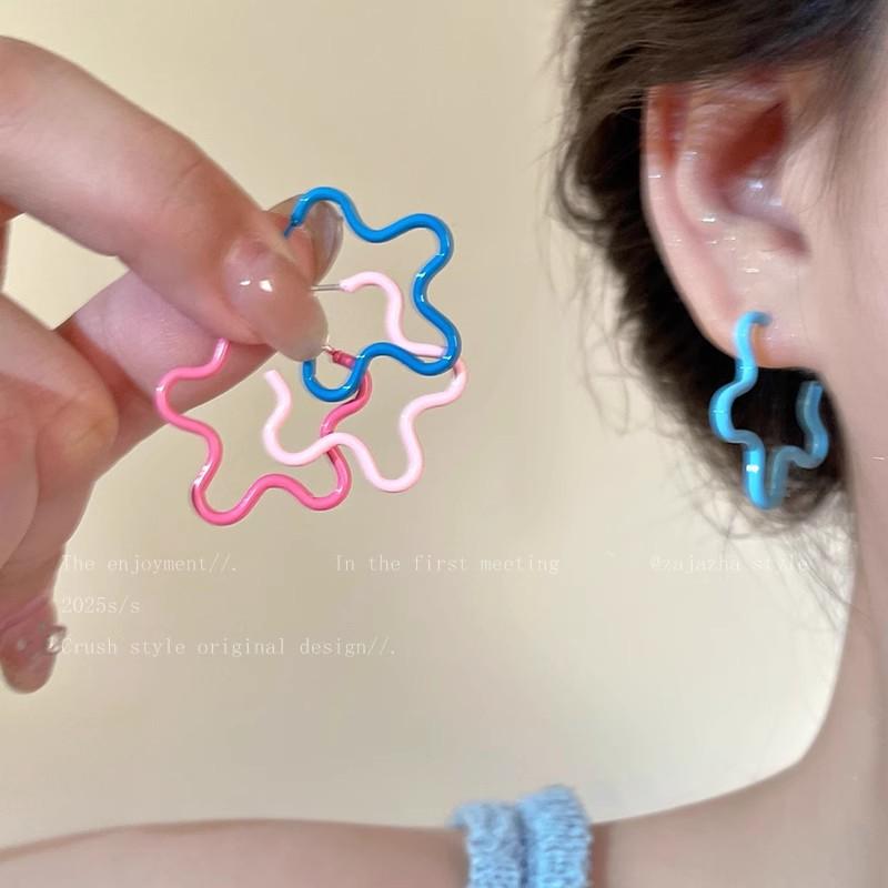 Blue Gradient Small Flower-shaped Glazed Ear Ring for Women - Summer Sweet and Youthful Heart-shaped Earrings, Unique and Exquisite Ear Jewelry