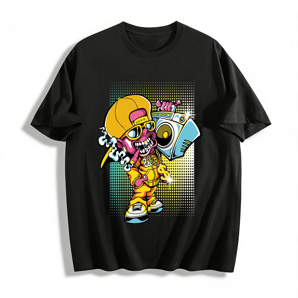 Hip Hop Style Vintage Radio Cool Print Casual Short Sleeve T-Shirt Pure cotton T-shirt