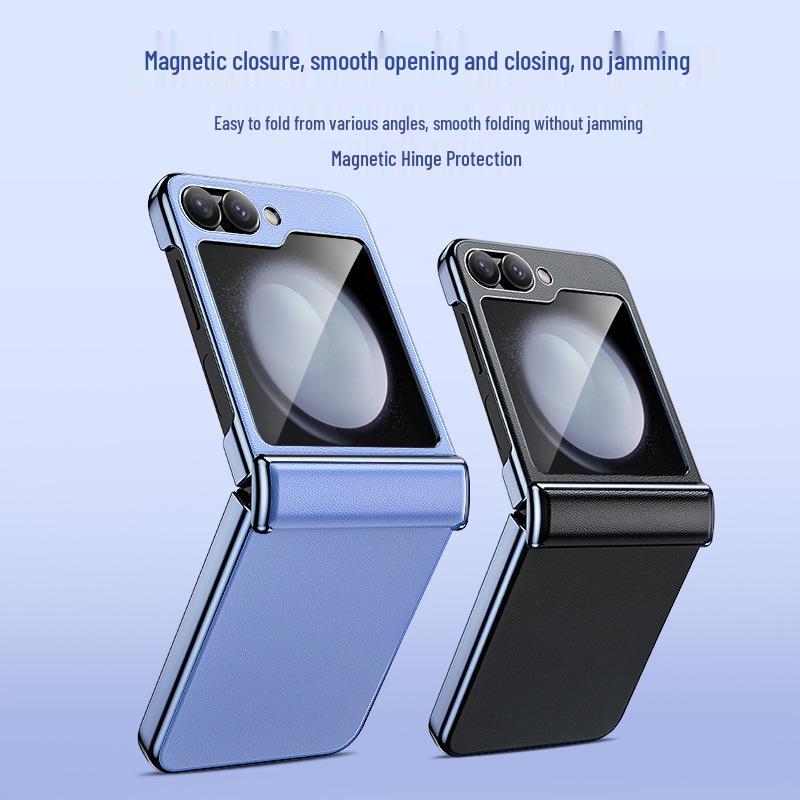 Samsung Z Flip 6 Leather Protective Case with Middle Axis Hinge