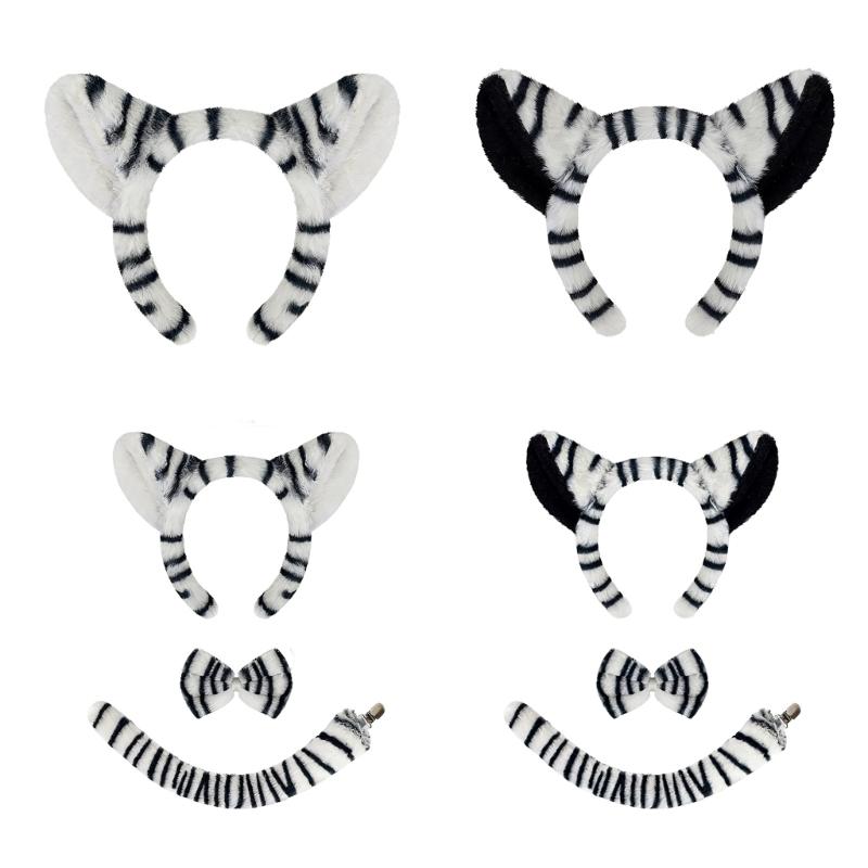 Zebras costume set,this zebras costume set 1piece zebras ears headband,1piece bowtie,1piece zebras tail,different package include different things,nice zebras fancy costume accessories to meet your kid's cosplay needs.