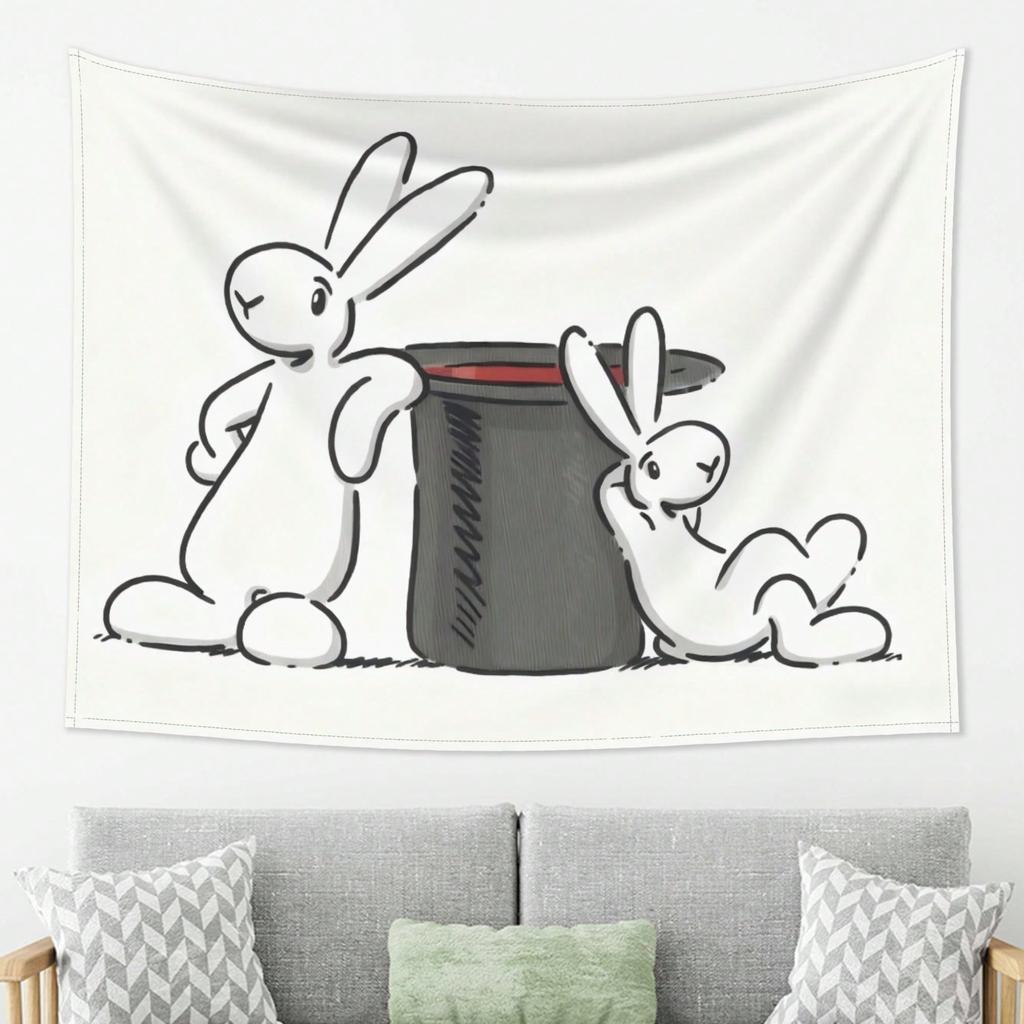 1pc Black White Magic Bunny Tapestry 2D Single Print Playful Home Decor Soft Accessory Cute Functional WhimsicalThemed Durable