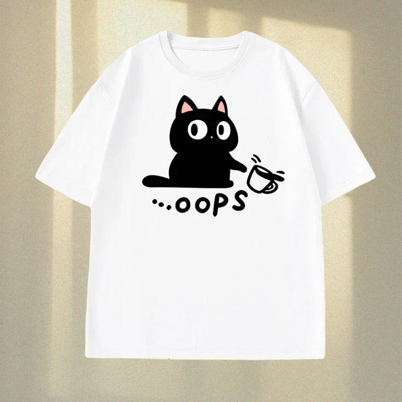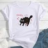 Meow Meow black cat print funny T-shirt for women casual street clothes round neck t-shirt