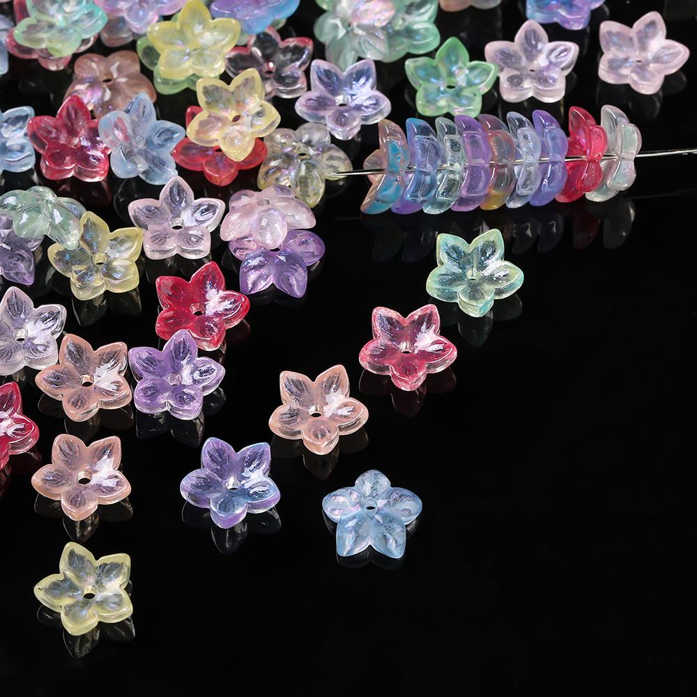 20pcs Glass Flower Shaped Beads Caps Five Petaled Flowers Loose Spacer Beads for DIY Jewelry Making Bracelet Necklace Supplies
