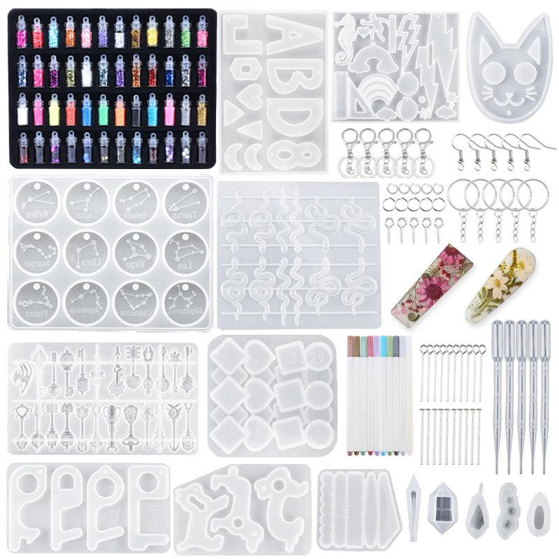Silicone Casting Resin Jewelry Molds Set Epoxy Resin Tools Set Keychain Resin Molds for DIY Jewelry Pendants Craft Making