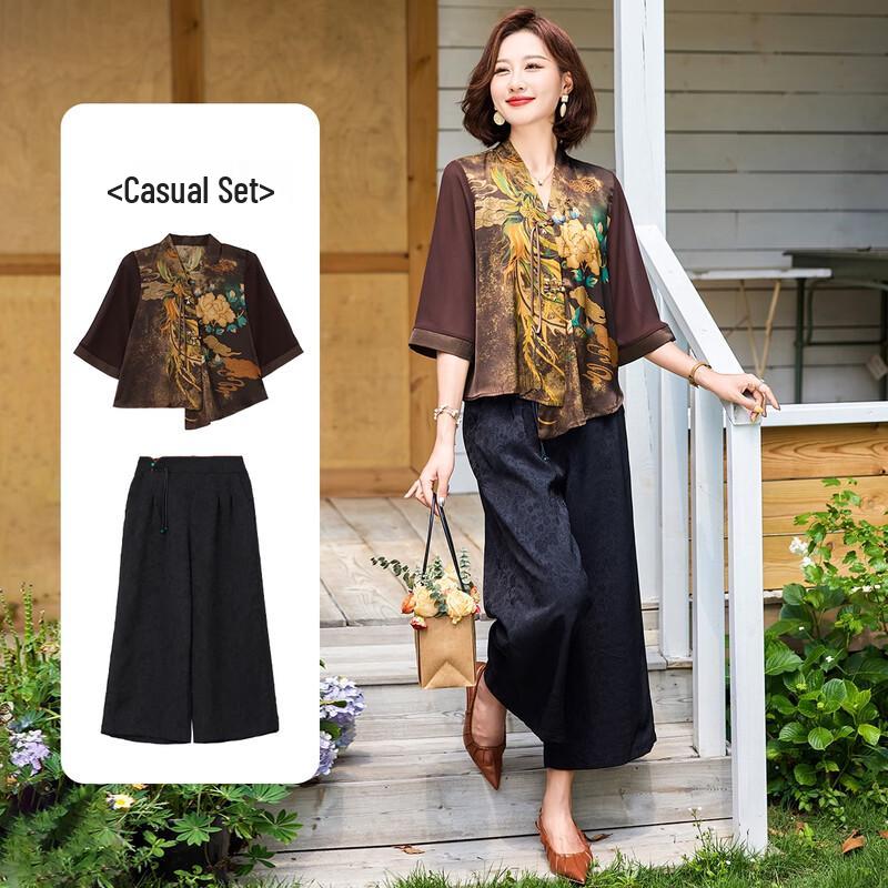 QianLian Summer Two-Piece Set for Middle-Aged Women