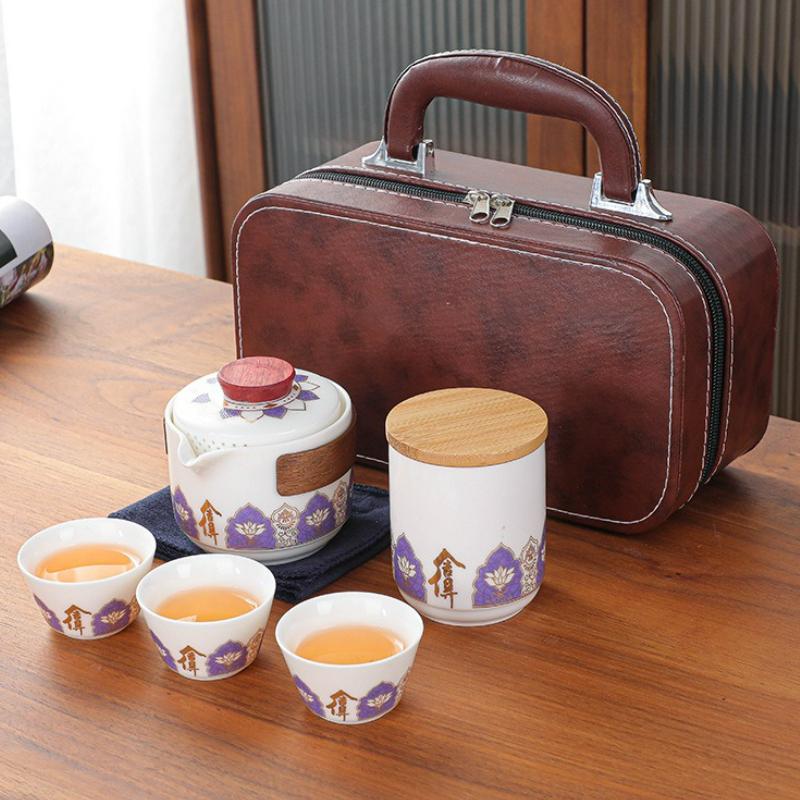 Ceramic Tea Set Travel Portable Outdoor Tea Bag Ceramic One Pot Three Cups Tea Set Home Office Quick Customer Cup Handheld Gift