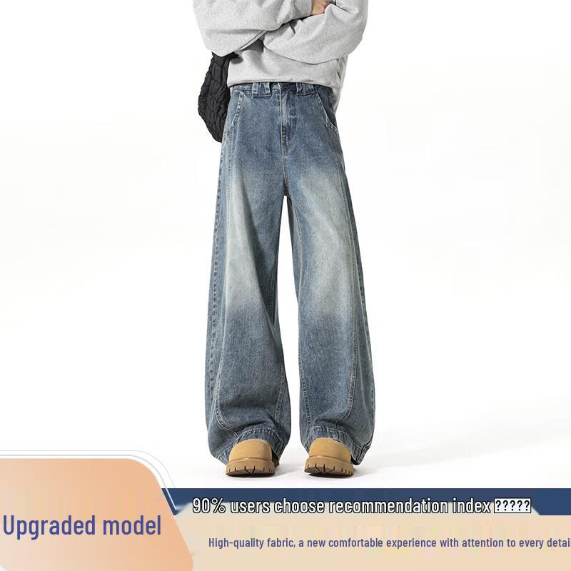 VUUG Men's American Retro Curved Wide-Leg Jeans