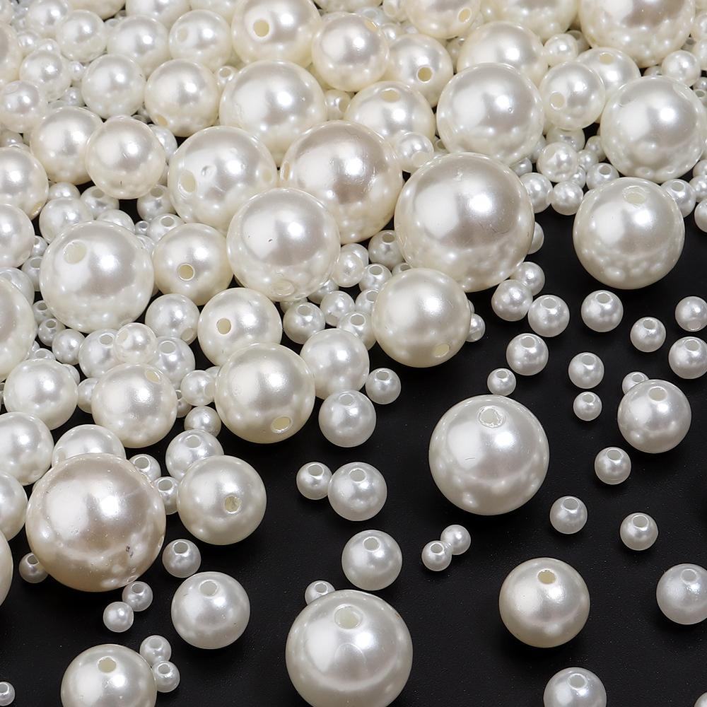 10-1000pcs Beige ABS Imitation Pearl Beads Multisize Round Loose Beads With Hole For Jewelry Making DIY Bracelets Accessories