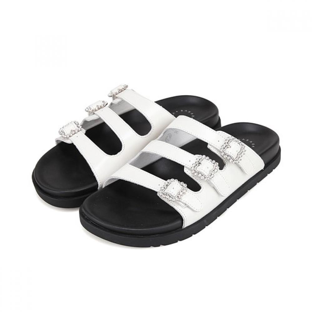 The cowhide jeweled buckle daily mule slide BBJ331WT offers optimal comfort with its premium cowhide and pigskin lining. Its 2.5cm low heel accentuates comfort, while the white color provides a visual refreshment ideal for summer, blending seamlessly with any style. It is recommended as a daily shoe suitable for various looks from casual to slacks.