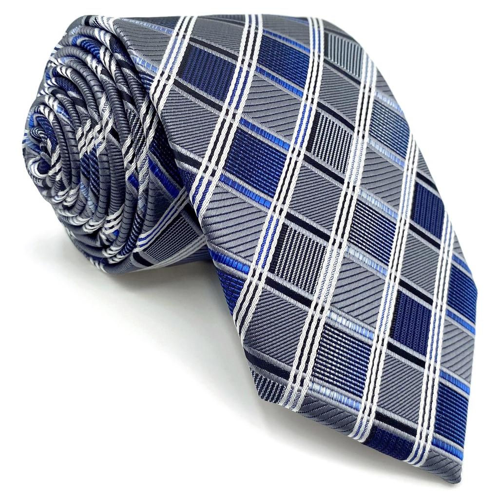 SHLAX&WING Long Tie for Men, Blue Check Pattern, Silk, 160cm, XL