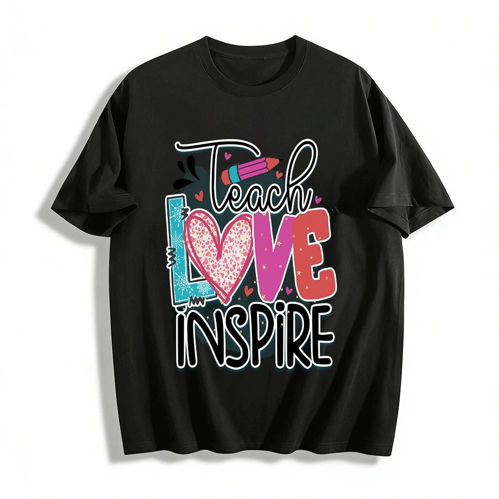 Teach Love Inspire Graphic Tee Teacher Appreciation Casual Top Pure cotton T-shirt