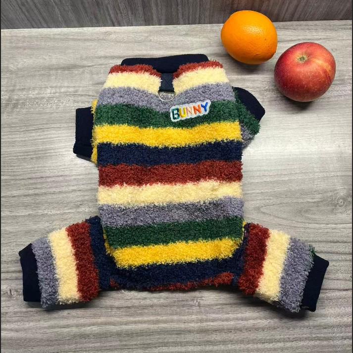 Autumn/Winter Striped Cotton Pet Clothing for Cats & Dogs - Full Print, Four-Legged Design for Small to Medium Pets
