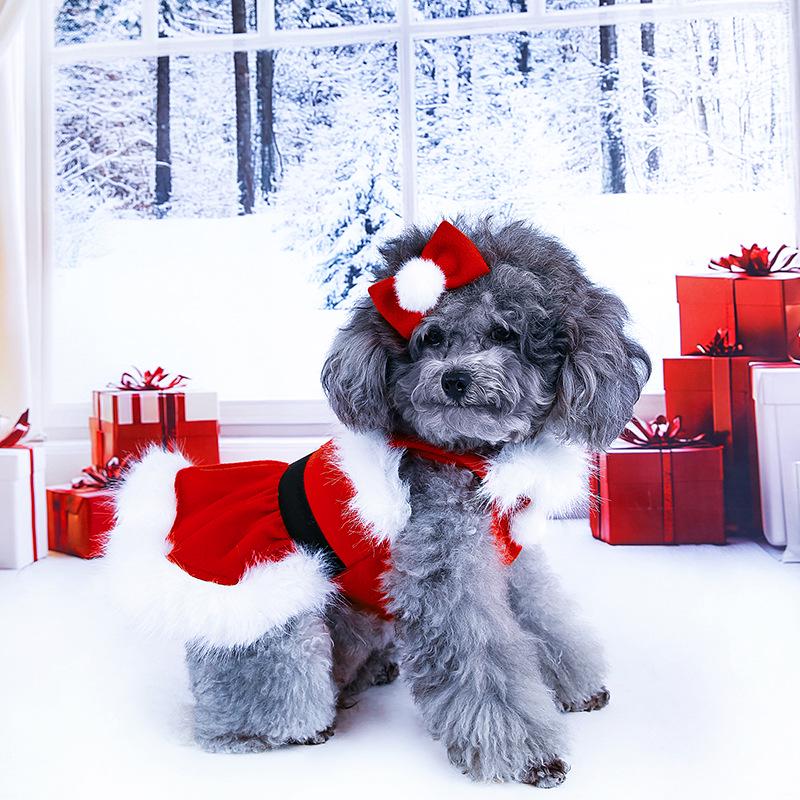 New Year Cross-border Christmas Pet Clothes - Classic Winter Old Man Style Dog Outfit with Dress & Headwear