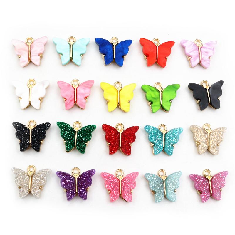 10pcs 14x16mm Acrylic Butterfly Charms Pendant Alloy Metal Back For Necklace Bracelet DIY Jewelry Making Accessories Findings
