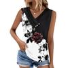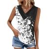 Maiou de damă cu imprimeu, cu nasturi, cu gât în V, fără mâneci, larg, top la modă