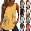 Maiou de damă cu imprimeu, cu nasturi, cu gât în V, fără mâneci, larg, top la modă