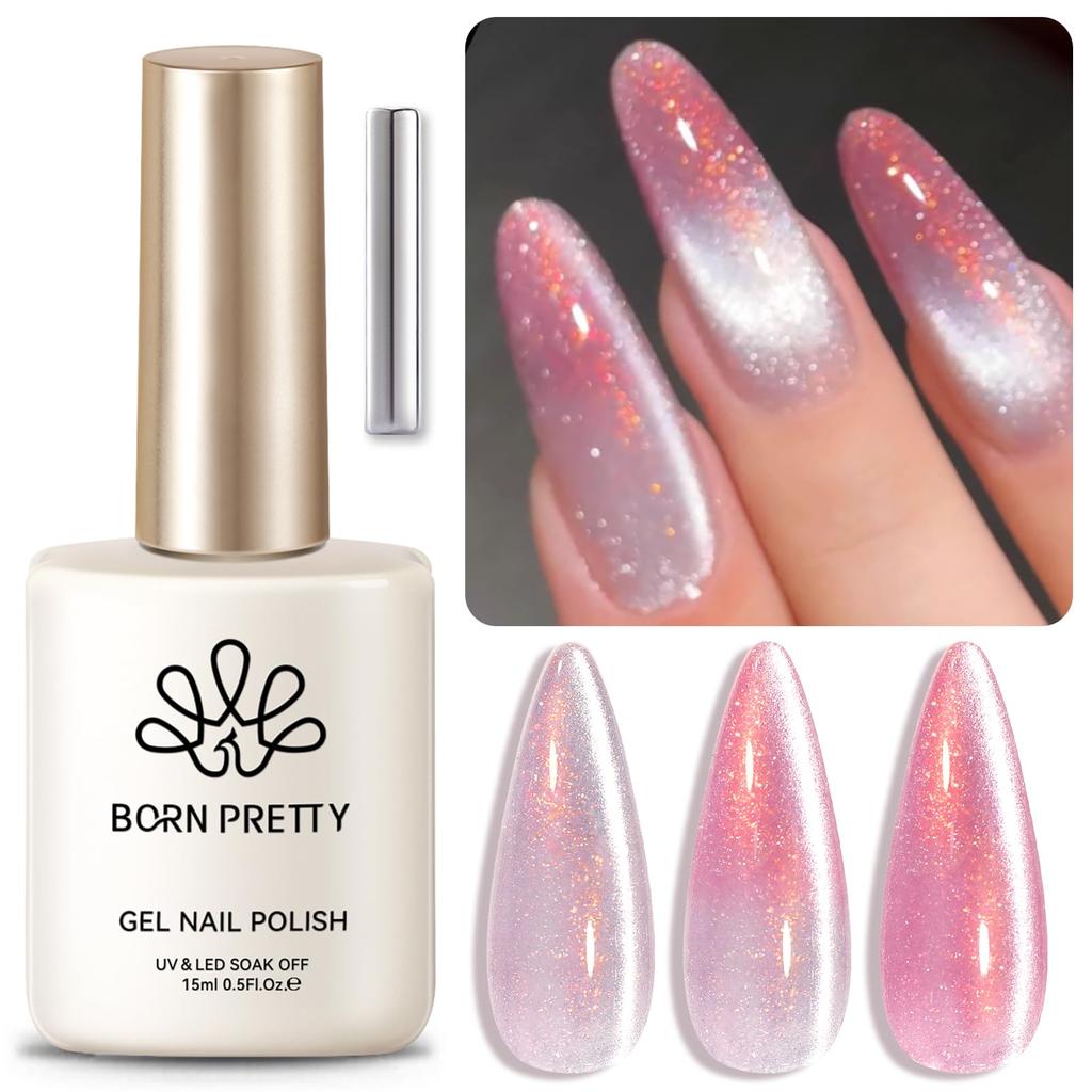 BORN PRETTY Magnetic Eye Gel Nail Polish 15ml Powder Silver Glitter Magnetic Gel Nail Polish Perfect for Nail Salons - Color-Changing -
