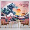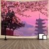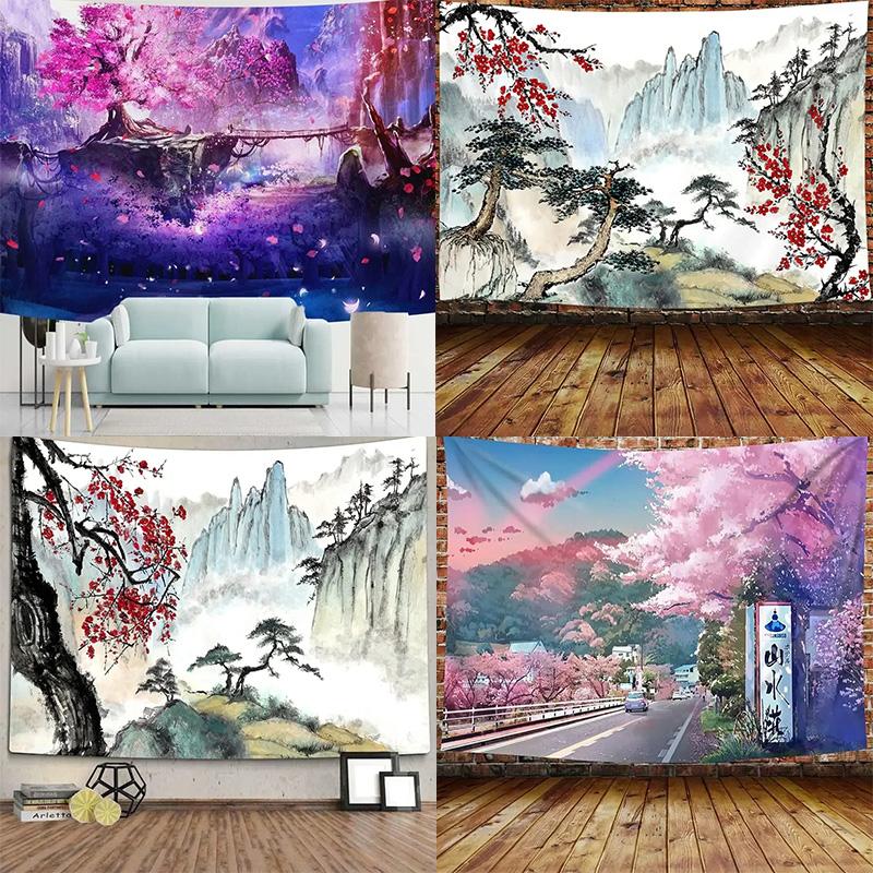 Japanese Mountains And Cherry Blossom Tapestry Sakura Village Aesthetic Art Bedroom Wall Hanging Anime Landscape Tapestry