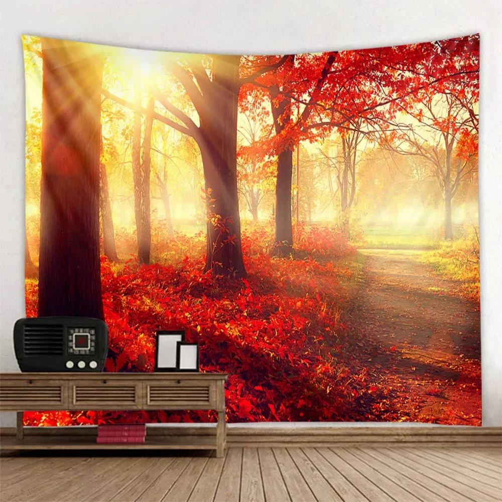Forest landscape tapestry wall hanging living room bedroom fabric decoration background Bohemian hippie picnic mat bed sheet