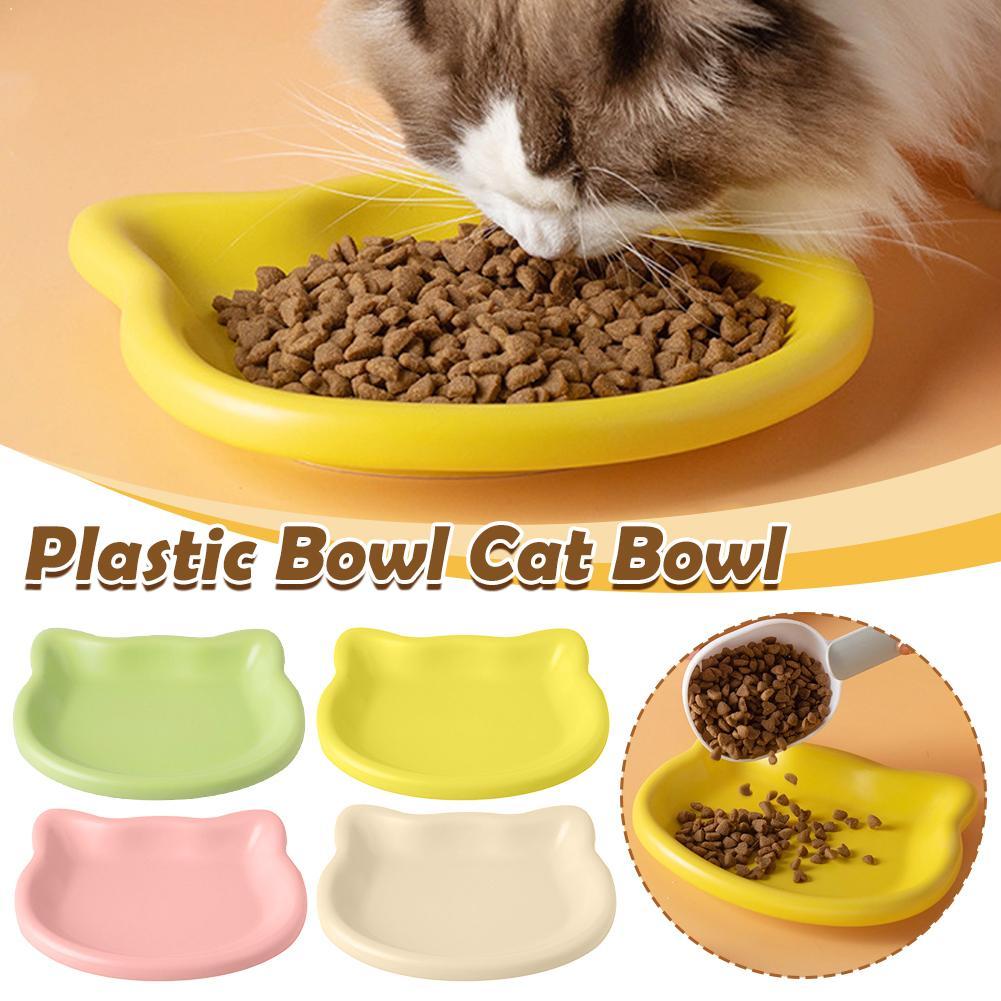 Multicolor Cat-Shaped Plastic Cat Bowl Set Cartoon Non-Slip Pet Food Dish for Cats Ideal Pet Supplies
